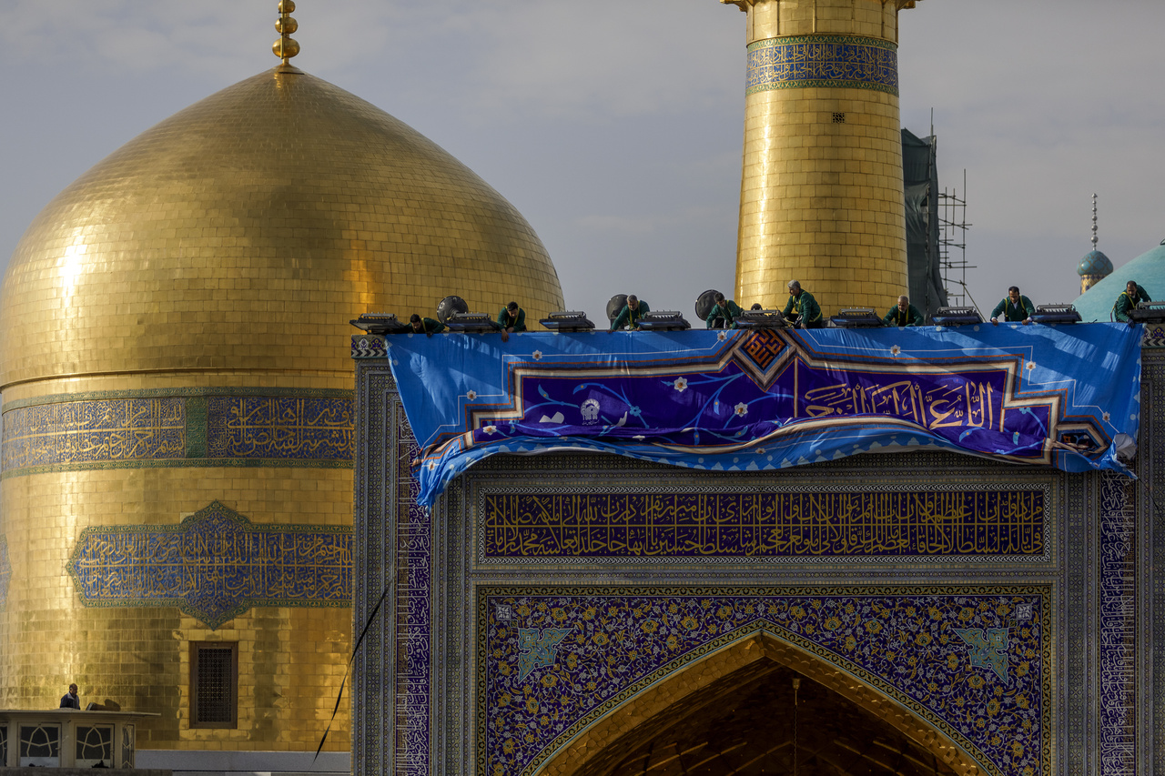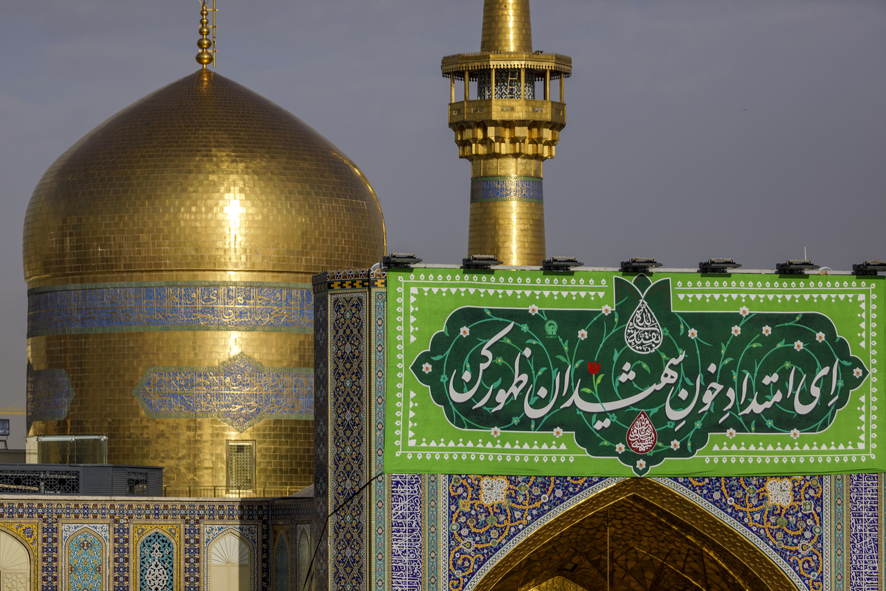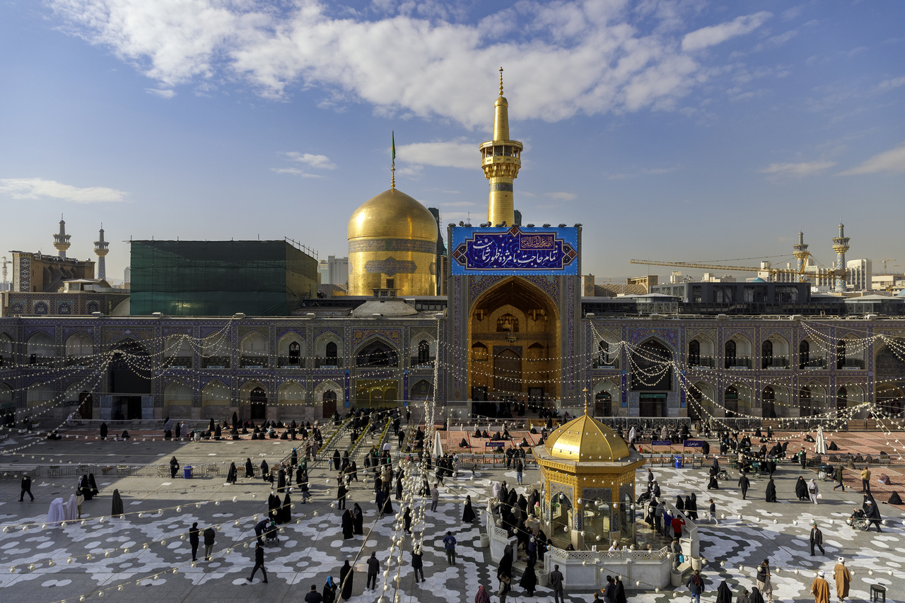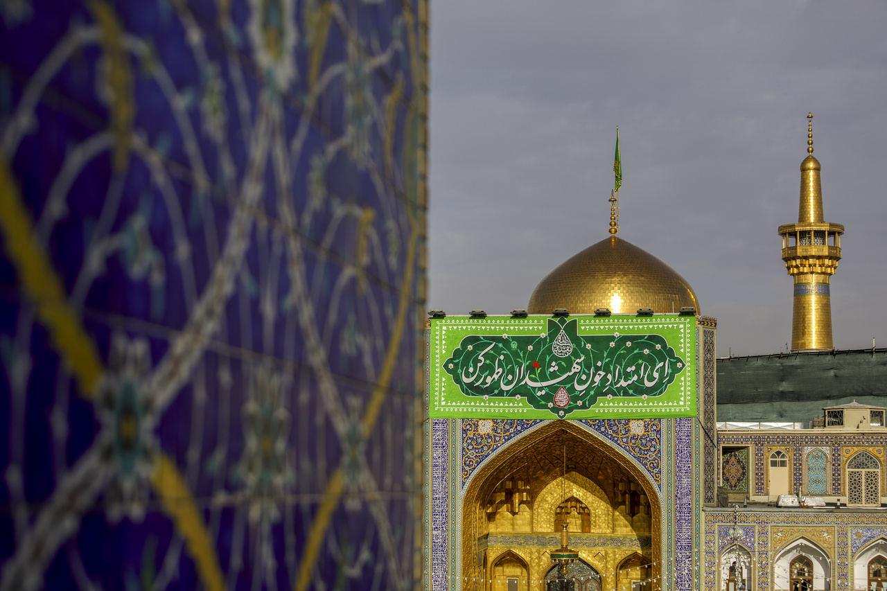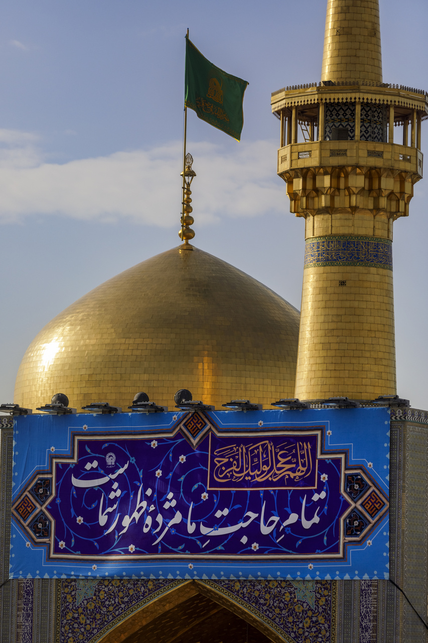 On the occasion of the approaching mid‑Sha’ban festivities, banners inscribed with the blessed attributes of the Savior of humanity, Imam Mahdi (may God hasten his reappearance), were installed above the entrances of the sacred sites within Imam Reza shrine. Photographer: Seyed Morteza Fatemian